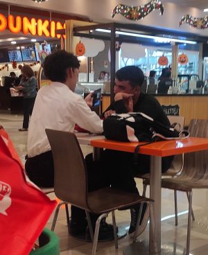 Uy si, tenemos un código que es 01 . Cuando vemos una pareja de chicos decimos 01 y ya sabemos donde tenemos que mirar o buscar. Va bien por si están cerca o cuando vamos con mi marido y mi hijo y así no se enteran de nada y nosotras lo pasamos de miedo. Pues no nos reímos ni qué.